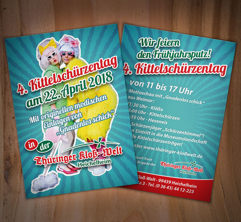 Für den 4. Kittelschürzentag in der Thüringer-Kloß-Welt in Heichelheim erstellte Penzil einen Flyer. Als Einkaufsbeilage wirbt dieser für die Veranstaltung.