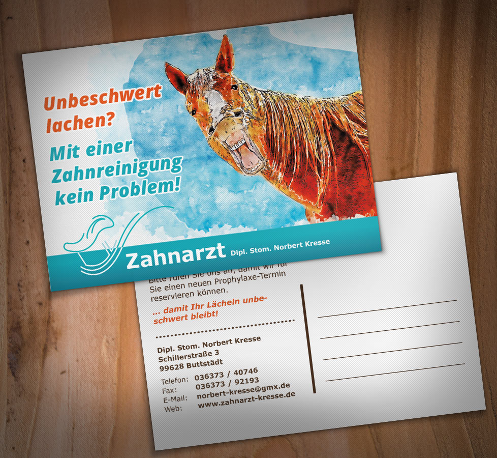 Damit dieser Termin nicht in Vergessenheit gerät, kreierte Penzil für die Zahnarztpraxis Dipl. Stom. Norbert Kresse in Buttstädt diese Erinnerungskarten.