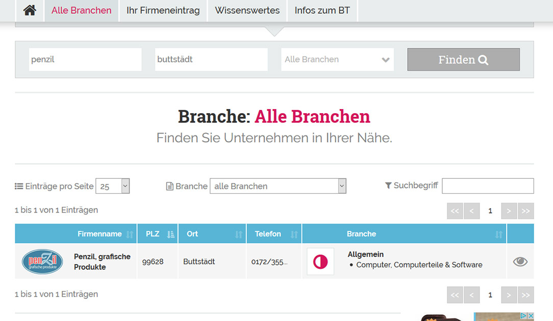 Der-Business-Tipp ist ein Branchenbuch im Internet, in dem jede(r) Gewerbetreibende eine kostenlose Seite erstellen und seine/Ihre Firma vorstellen kann.