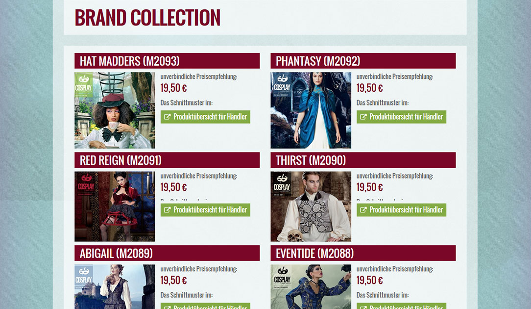 Entwickelt und umgesetzt von Penzil, präsentiert diese trendige Website, zweisprachig (deutsch/französisch) und erstmalig in Europa die neue Cosplay-Schnittmuster-Kollektion von McCall`s®.