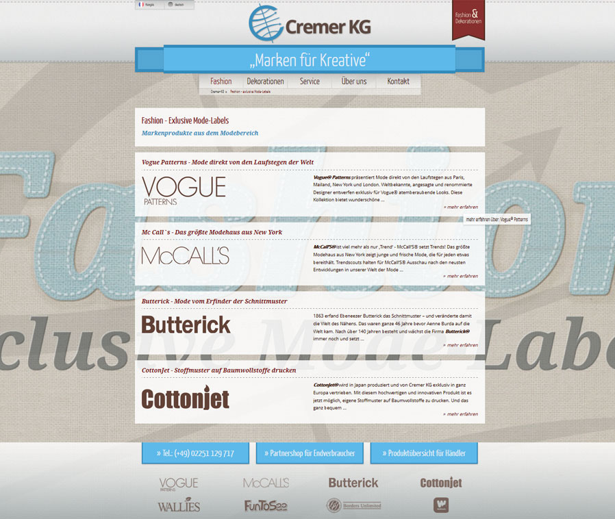 Die Cremer KG kümmert sich seit über 150 Jahren als international agierendes Handelsunternehmen um die Belange von mode- und trendorientierten Kunden.
