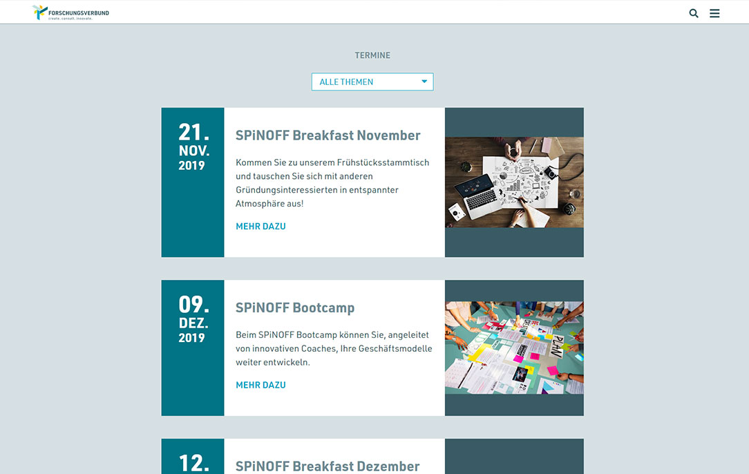 Die Besonderheit dieser Website zeichnet sich durch ein filterbares Newssystem dar. Neuigkeiten, Termine und Erfolgsgeschichten können nach Thematik gefiltert werden und werden in Echtzeit dargestellt.