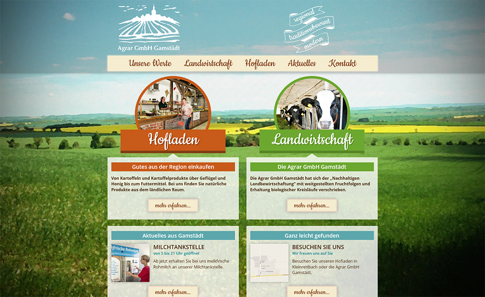 Die Agrar GmbH Gamstädt ist ein Landwirtschaftsunternehmen was historisch mit der Region verwachsen ist. Die Marke Die Gute Milch aus Gamstädt vertritt dabei die Produktion, Veredlung und Vermarktung der im Betrieb erzeugten Milch.