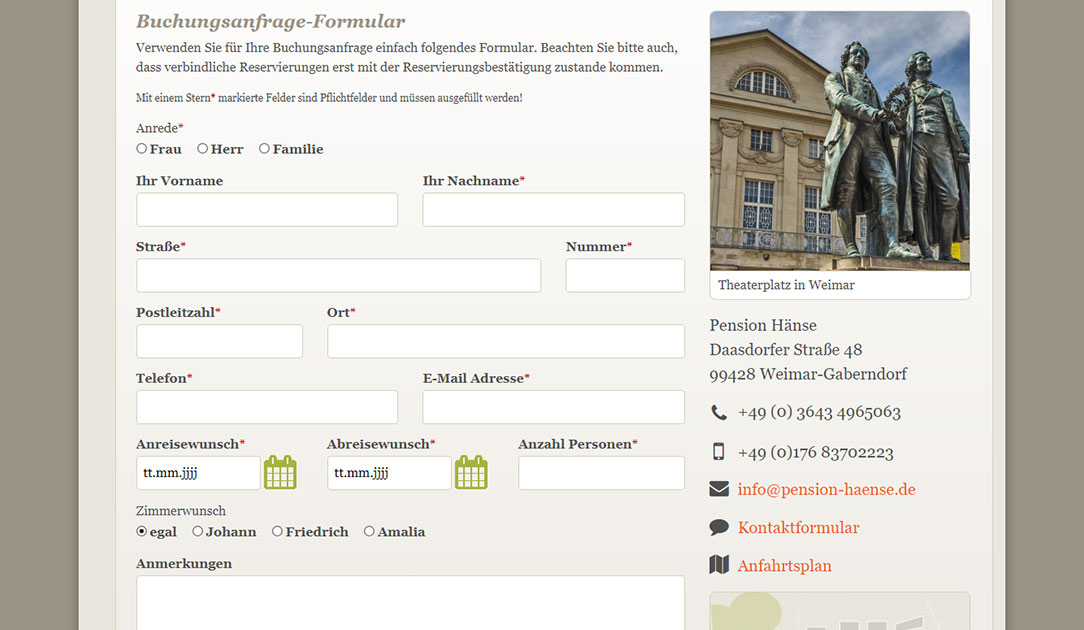 Die Pension Hänse ist Ihre Pension aus Weimar mit dem besonderen Blick auf die Klassikerstadt.