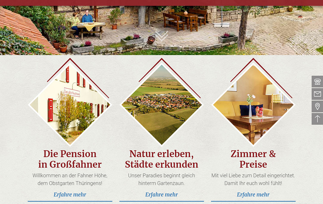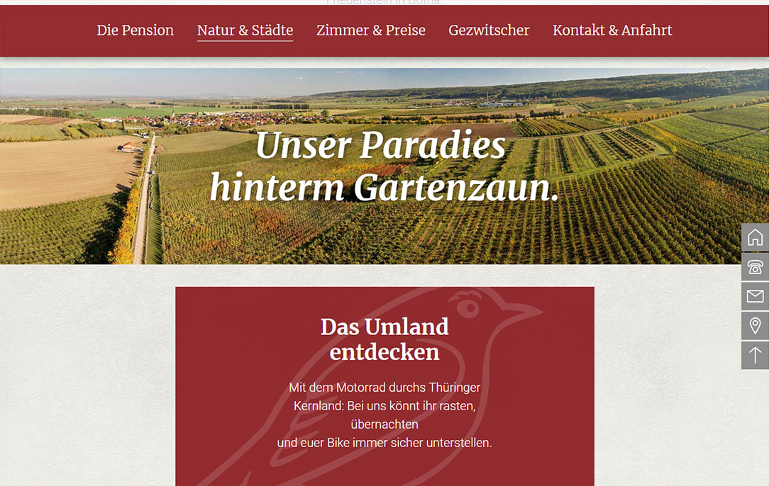 Mit ihrem unverwechselbaren Design lädt diese Website ihre Besucher ein, das Pensionsangebot zu durchstöbern sowie Übernachtungen im Obstgarten Thüringens zu buchen. Penzil erstellte dabei das Design, die Programmierung und betreute das Projekt bis zur Onlinestellung.